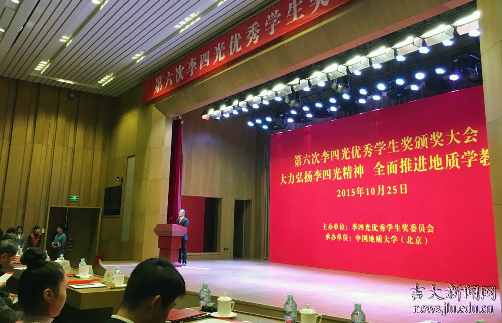 2015年10月25日,李四光优秀学生奖颁奖大会在中国地质大学举行。国土资源部党组书记、部长姜大明,国土资源部原总工程师张洪涛,国土资源部科技与国际合作司司长姜建军,中国地质科学院党委书记、副院长王小烈,中国科学院院士、北京大学副校长高松,中国科学院院士莫宣学,教育部科技司副司长雷朝滋,中国地质大学(北京)党委书记王鸿冰,中国地质大学(北京)校长邓军,中文字幕