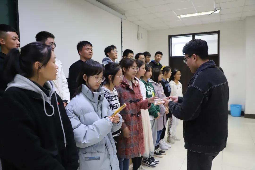 在本次年级大会的最后,对新生军训优秀个人获得者进行了表彰工作并合影留念。韩旭老师给同学们准备了刻有名字和激励语句的书签,这是送给同学们的开学礼物,同时也是送给大家的期望与祝福。希望同学们不负韶华,奋勇前行,做更好的自己。