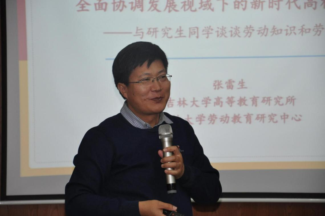 马克思主义学院高等教育研究所副教授张雷生老师受邀来到鸽子楼,以“全面协调发展视域下的新时代高校劳动教育”为题,为学院98名研究生新同学讲授了一堂接地气、有新意的劳动教育讲座。学院党委副书记马旭参加本次活动,活动由院研究生辅导员郑岩主持。