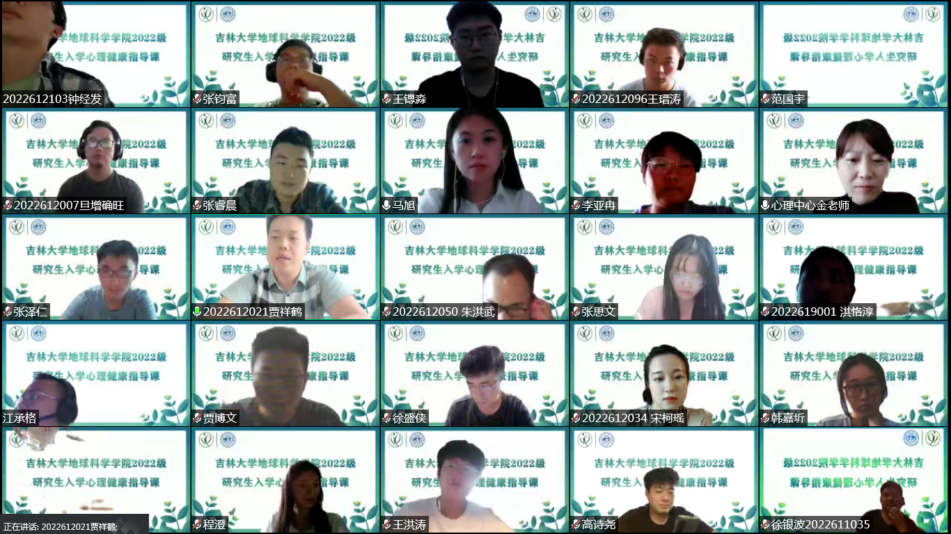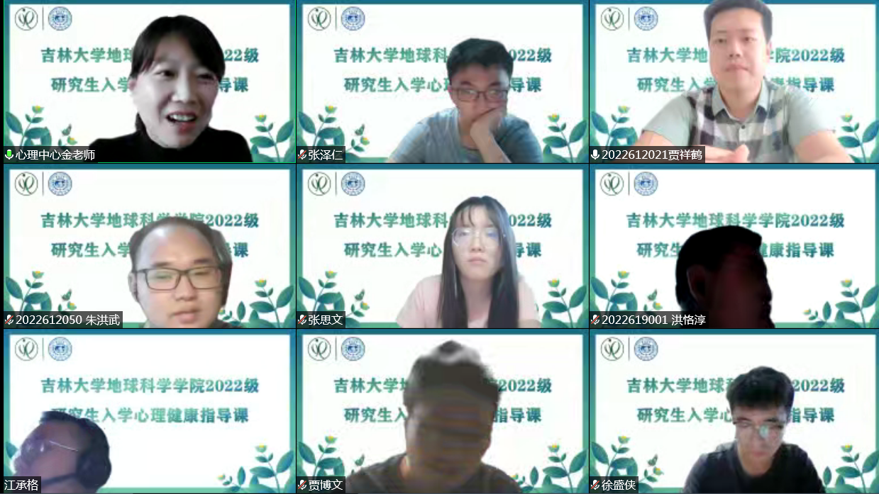 学生心理健康指导中心金佳老师,为学院158名研究生新生开展了一堂以“健康心态,助力研路”为主题的心理健康教育“云”讲座,讲座由学院党委副书记马旭主持。
