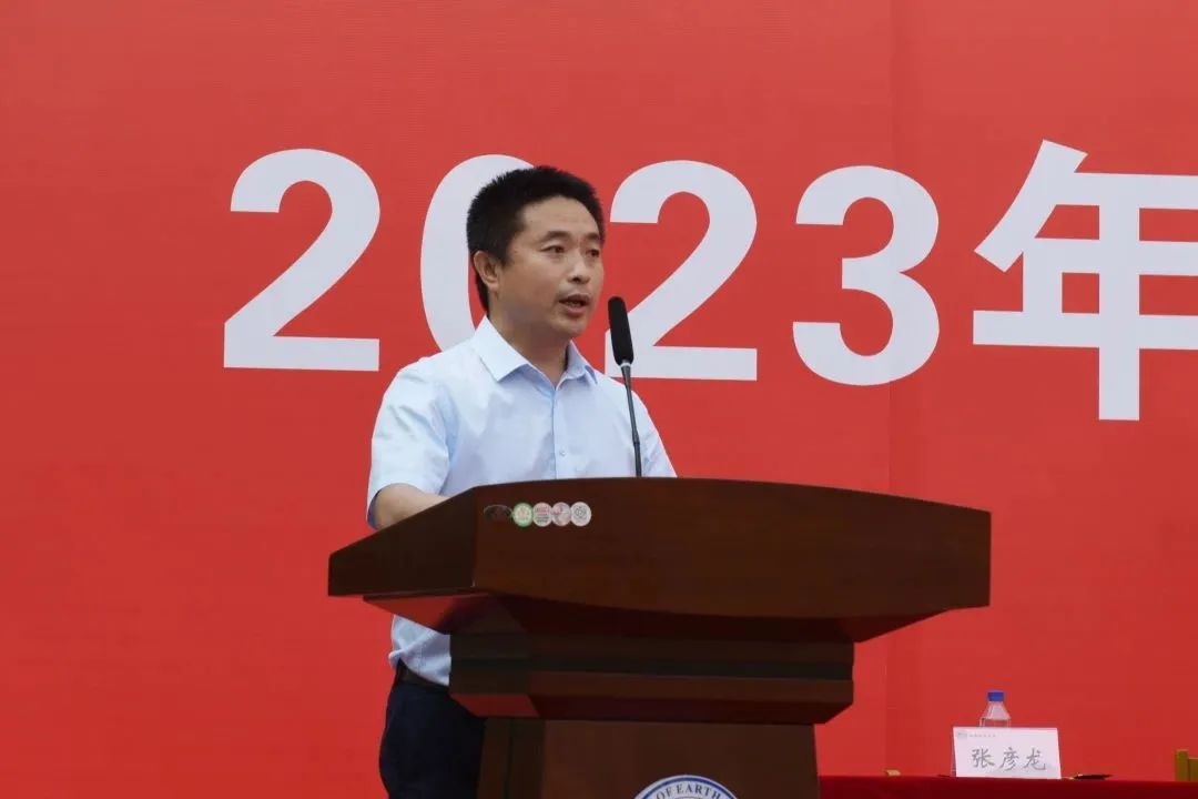 教师代表张彦龙为获奖老师及同学们表以衷心的祝贺。老师回想疫情三年,师生们克服种种困难,在学习上共同进步,在生活上积极防疫。都说地质工作艰难,但当我们于大孤山顶俯瞰沃野,于牤牛山间体会石盒子组的惊涛骇浪,方知地质之美,然后一切付出都变成值得。老师告诉同学们,要砥砺前行,永攀高峰,要享受过程,尽精微,致广大。并祝愿同学们前程似海。