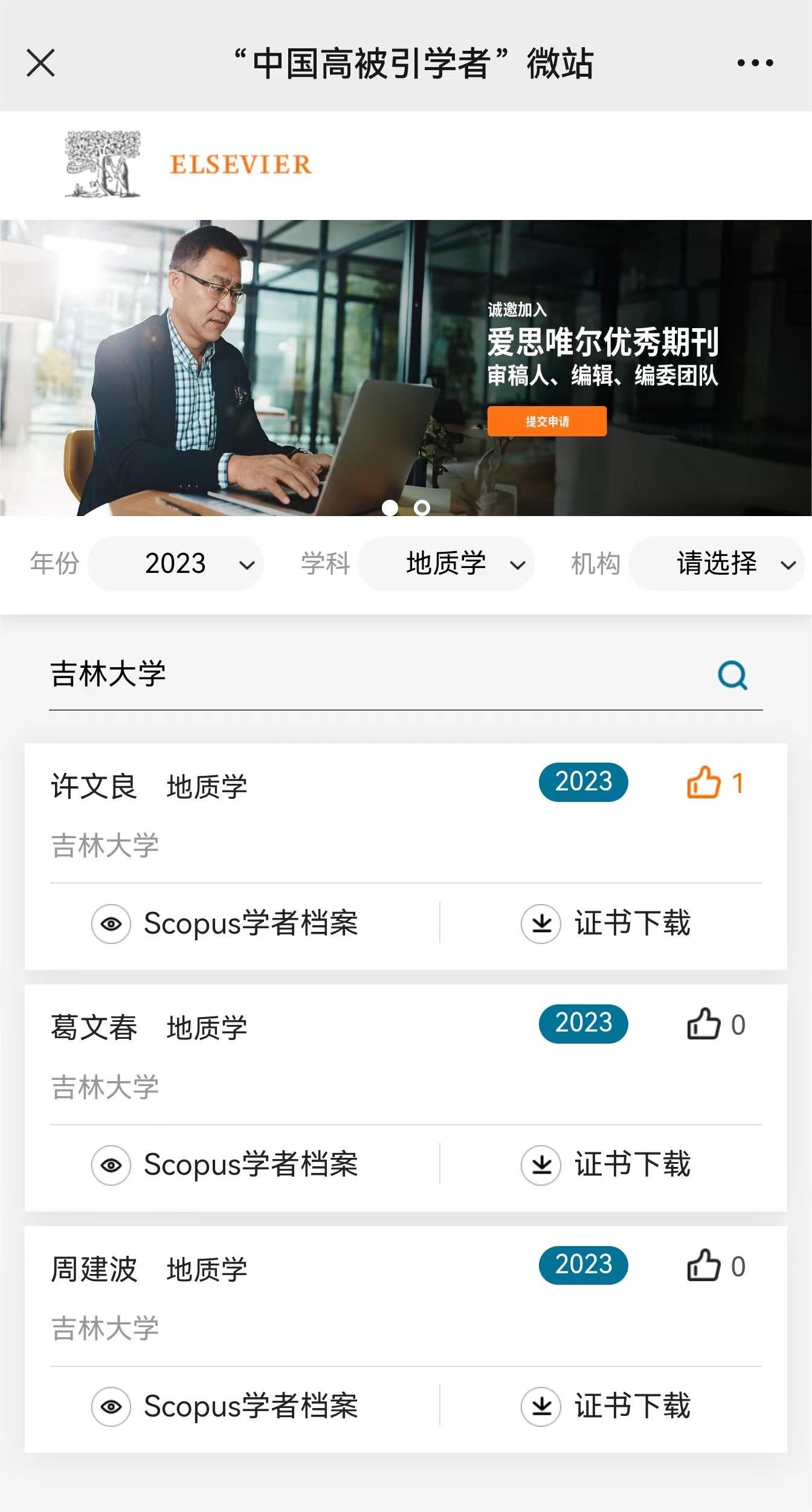 3月27日,爱思唯尔(Elsevier) 发布2023“中国高被引学者” (Highly Cited Chinese Researchers)榜单,中文字幕