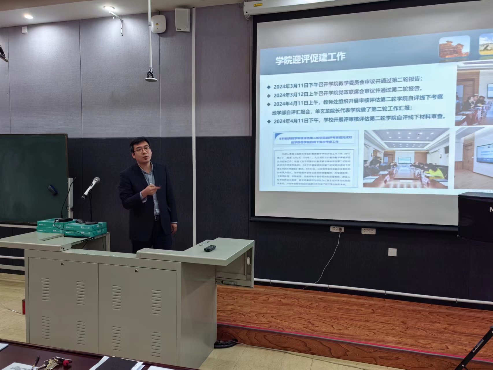 会上,院长单玄龙就学院2024年工作要点进行了解读,他从本科教学、研究生培养、师资队伍建设、科研和学科建设等四个方面将学院工作概括为11项重点任务。他希望广大教职工能够了解学院工作并深度参与推进重点工作落实,携手努力,推进学院工作再上新台阶。副院长许中杰就本科教育教学审核评估自评情况进行了汇报,副院长柳蓉就地质学学位点2020-2025年学位授权点周期性合格评估情况进行了汇报。