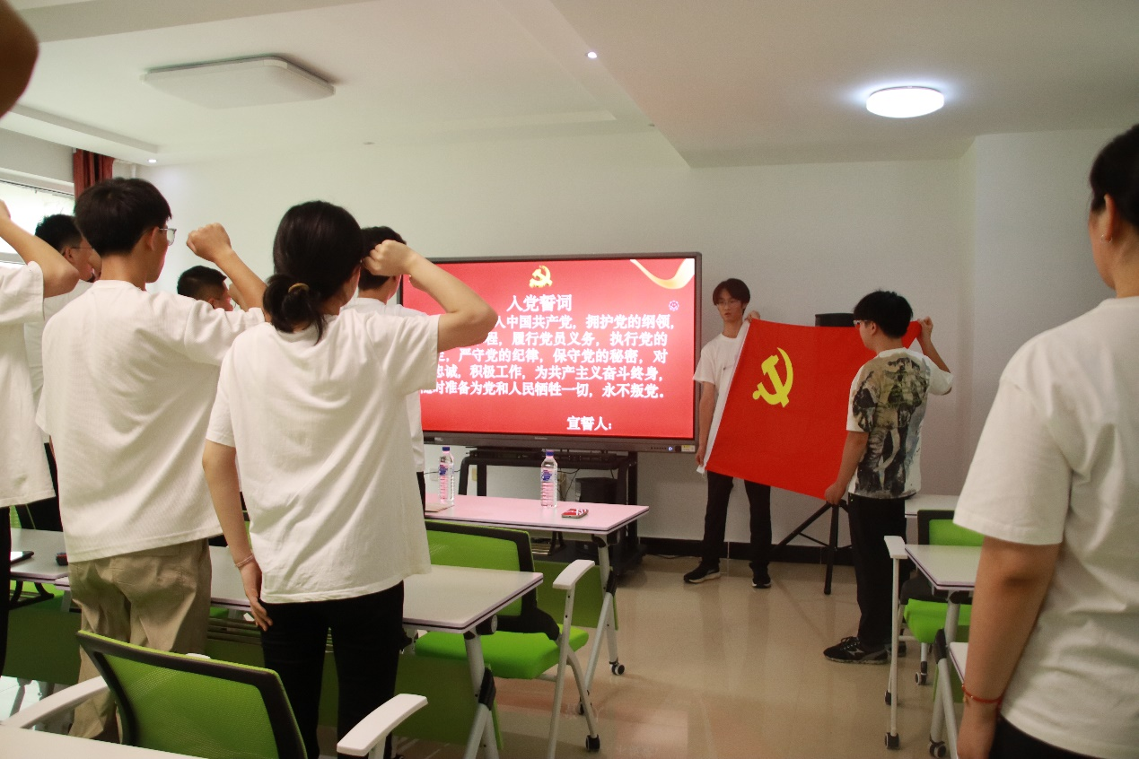党支部副书记赵晶带领兴城学生临时党支部35名党员重温入党誓词。同学们全体起立,精神饱满,声音洪亮。通过重温入党誓词,同学们更加深刻的理解了自己的责任和使命,相信在实际行动中将更好地践行党的宗旨和原则。