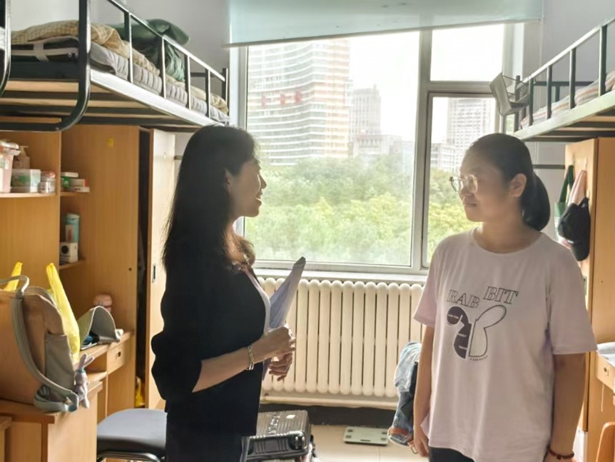 8月22日,党委副书记马旭深入2024级研究生宿舍走访慰问。“对未来学习有什么期盼”“目前有什么困难”,马旭书记与新生们亲切交谈,详细了解同学们的住宿情况和到校感受,倾听同学们的生活需求和心声感想,着力帮助大家解决生活问题,希望大家在地科大家庭里找寻到自己的成长小坐标,学有所获、情有共鸣。马旭书记还向新生家长表达了诚挚地问候,介绍了学校及学院的基本情况,并表示学校学院会竭尽所能保障好同学们的日常学习生活。