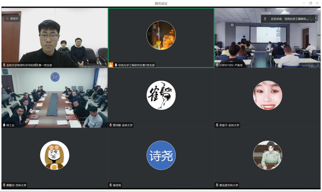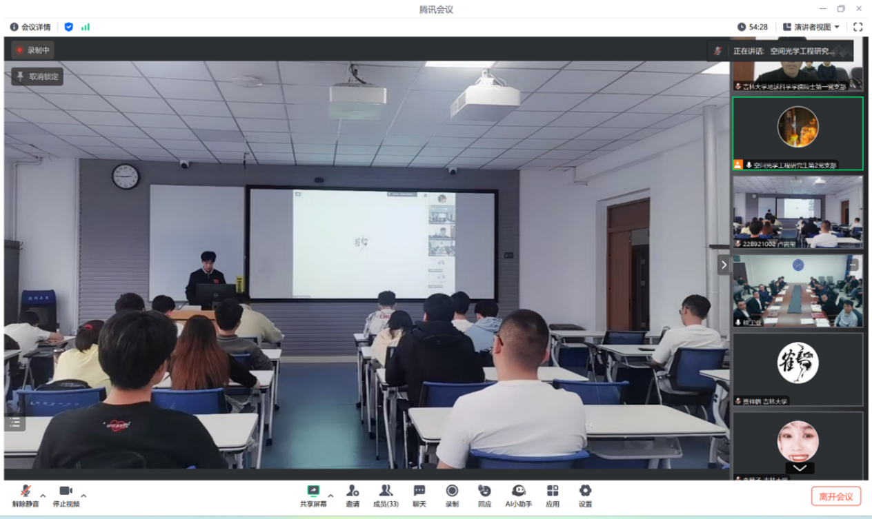 党委副书记吴新明,硕士学生第一党支部书记吕勃燃,航天学院空间光学工程研究生第二党支部书记臧云朝出席活动,三方党员代表参加活动。活动由臧云朝书记主持。