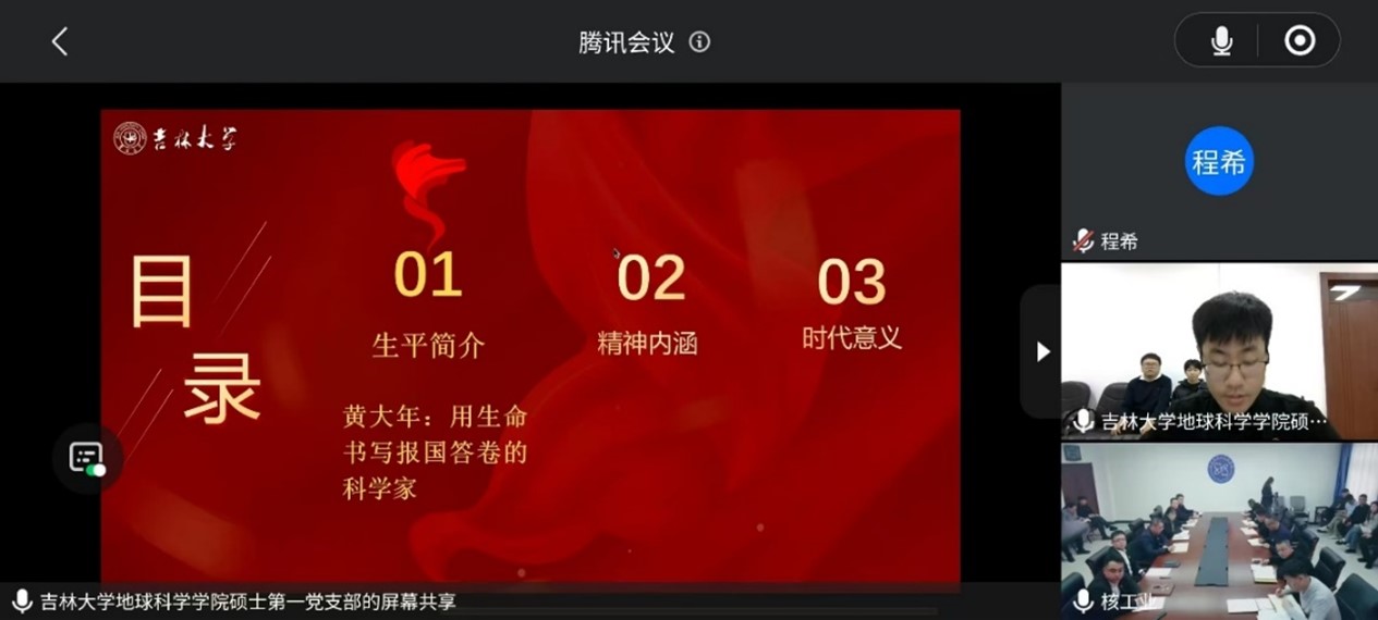 硕士学生第一党支部书记吕勃燃同志分享了黄大年精神。