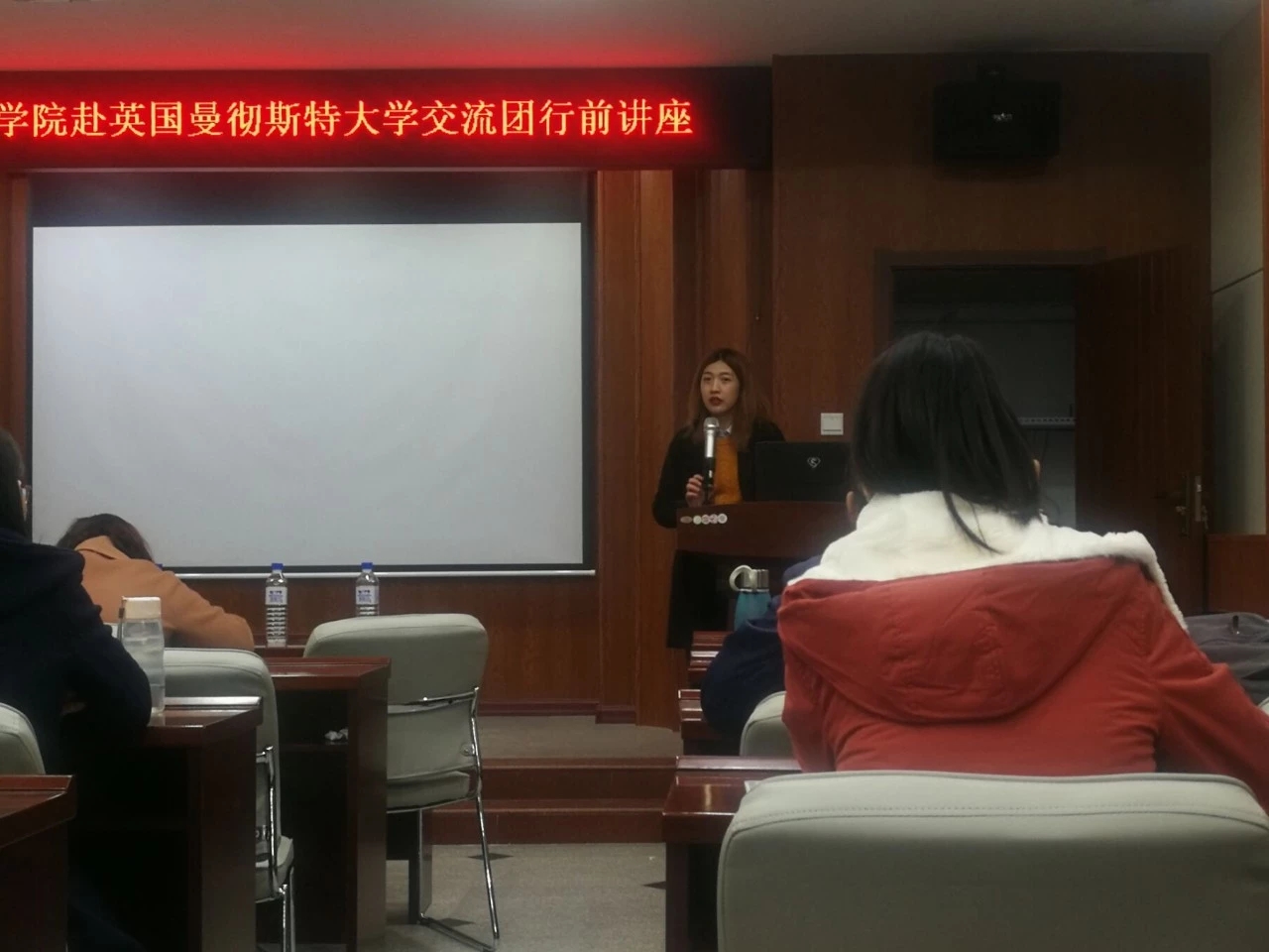 于鸽子楼报告厅举办了赴英国曼彻斯特大学交流团行前讲座,本次讲座由国际合作与交流处的石瑶老师主讲,为即将赴英国交流的学生分享出国经验。出席本次讲座的有党委副书记兼副院长曲珩老师,中文字幕