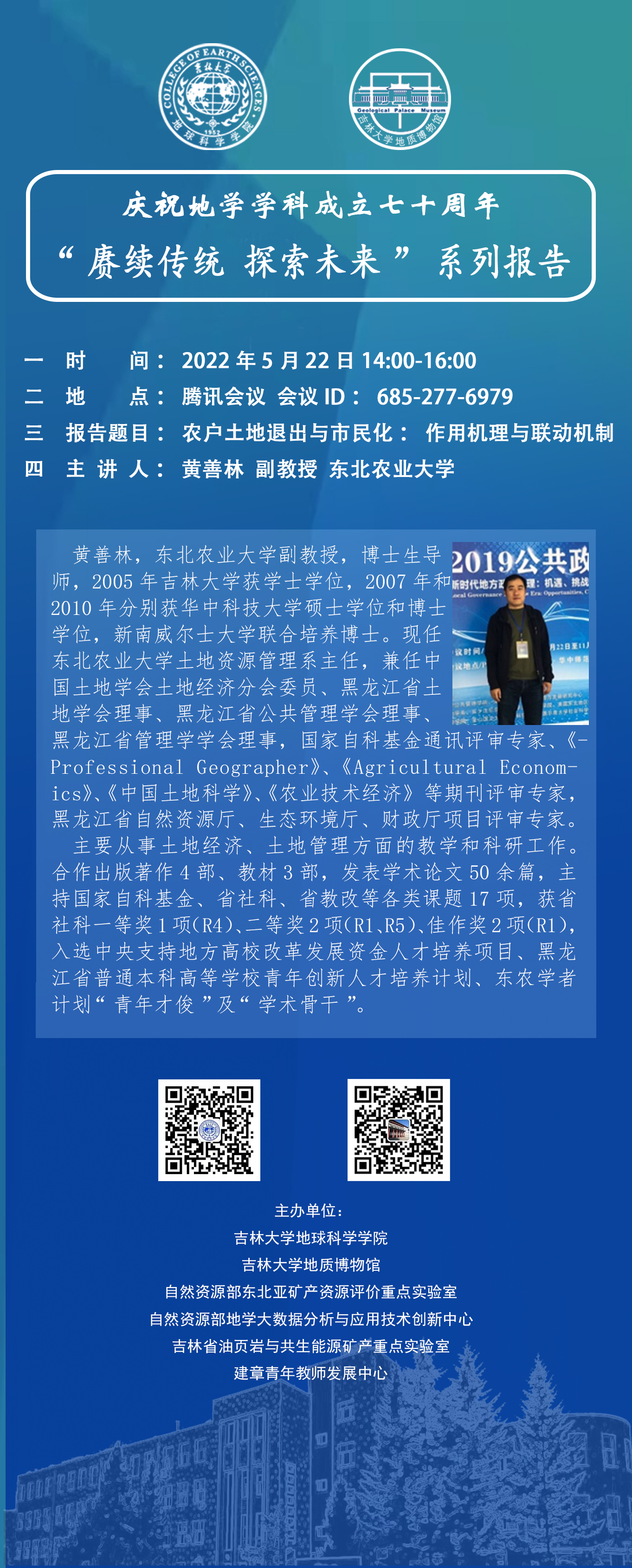 庆祝地学学科成立七十周年-- “赓续传统 探索未来”系列报告第十四期