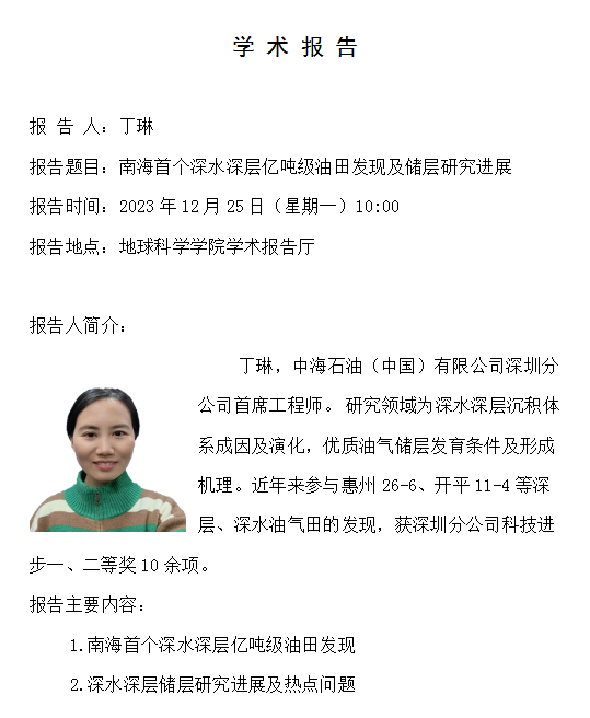 中海石油(中国)有限公司深圳分公司首席工程师丁琳学术报告