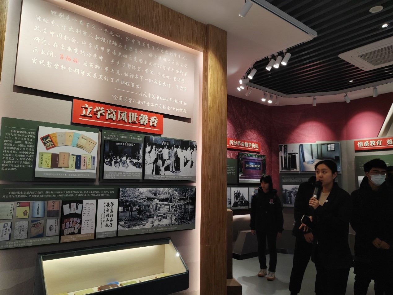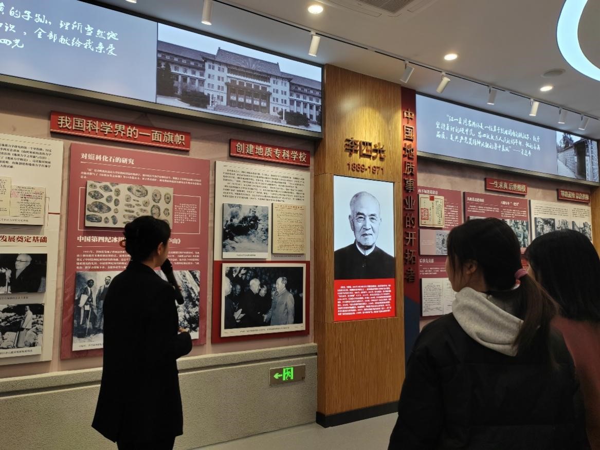 在讲解员的带领下,同学们走进“中国地质事业的开拓者”展区,了解到李四光院士创办了中文字幕