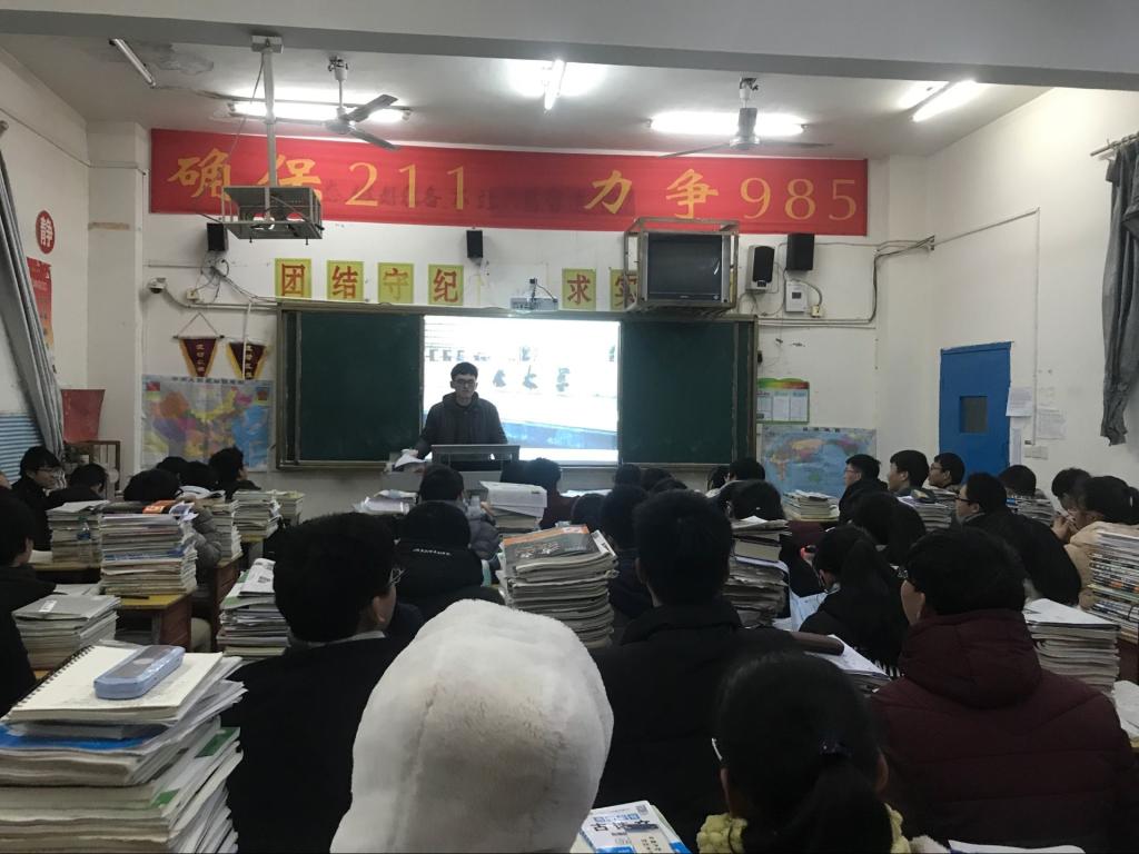 在活动开始之前,他们准备充分,收集、整理了许多关于吉大的资料,并做成ppt与视频的形式,在讲解上作为辅助,更加直观。首先,他们来到了高一的一二班,学弟学妹们对学长学姐的到来表现得十分热情,此次主讲人肖芬在热烈的掌声中开始了她的宣讲。她先给大家分发了宣传册,并播放了一段吉大宣传片,引起了学弟学妹们对吉大的兴趣。之后顺着ppt的放映,依次对吉大的建校情况,校园环境,师资力量以及招生政策进行了详略得当的讲解。肖芬也不断分享自身经历,让宣讲过程更加丰富。在互动环节中,肖芬针对同学们提出的如何奋战高考以及选报学校、专业等问题进行了解答,以过来人的角度为学弟学妹们传经送宝。