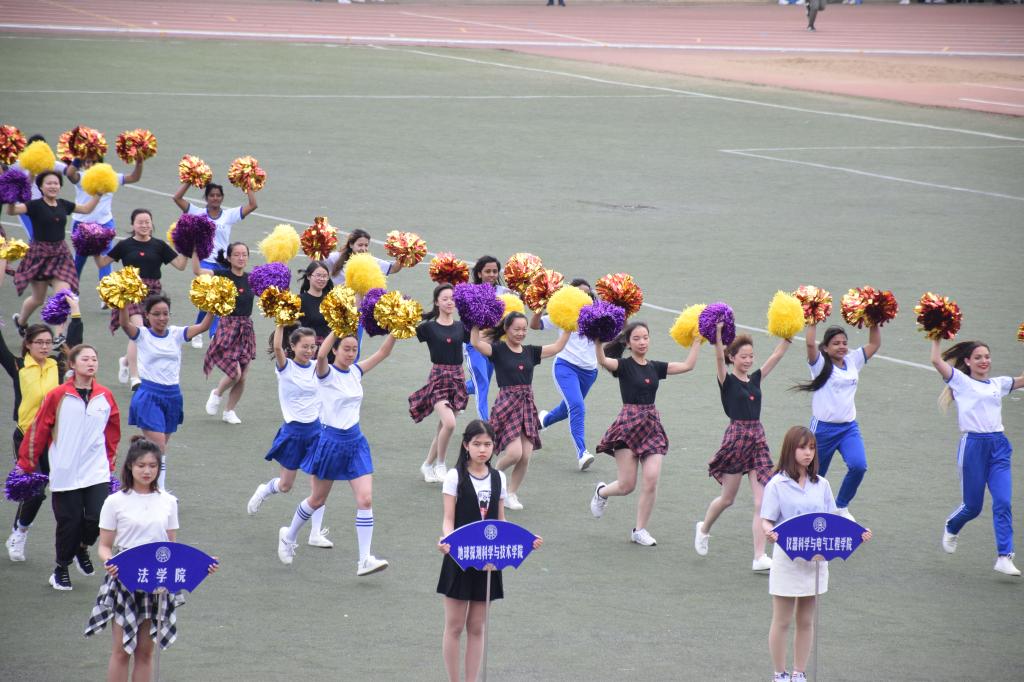 2018年5月25日,我校第57届运动会正式开幕,从八点半起,伴随着比赛的进行,变成了各学院庞大的广播体操啦啦操表演队伍,地科的队伍与大部队一起, 为场上的运动健儿们加油助威。
