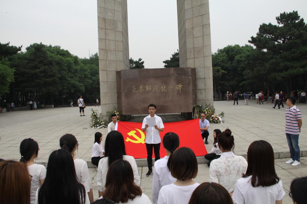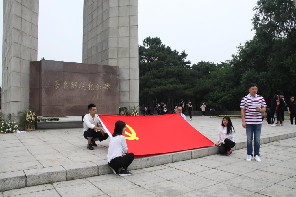 宣誓仪式开始前,准备工作有条不紊的进行,同学们整理着装,满怀激动的心情迎接这一重要的时刻,在长春解放纪念碑下随着党旗的入场,气氛庄严肃穆。随后主持人李功宇宣布仪式正式开始,奏唱《国际歌》,铿锵有力的歌声不仅响彻广场,更将无产阶级的战斗豪情与实现共产主义理想的坚强决心带入每一位党员的心里。