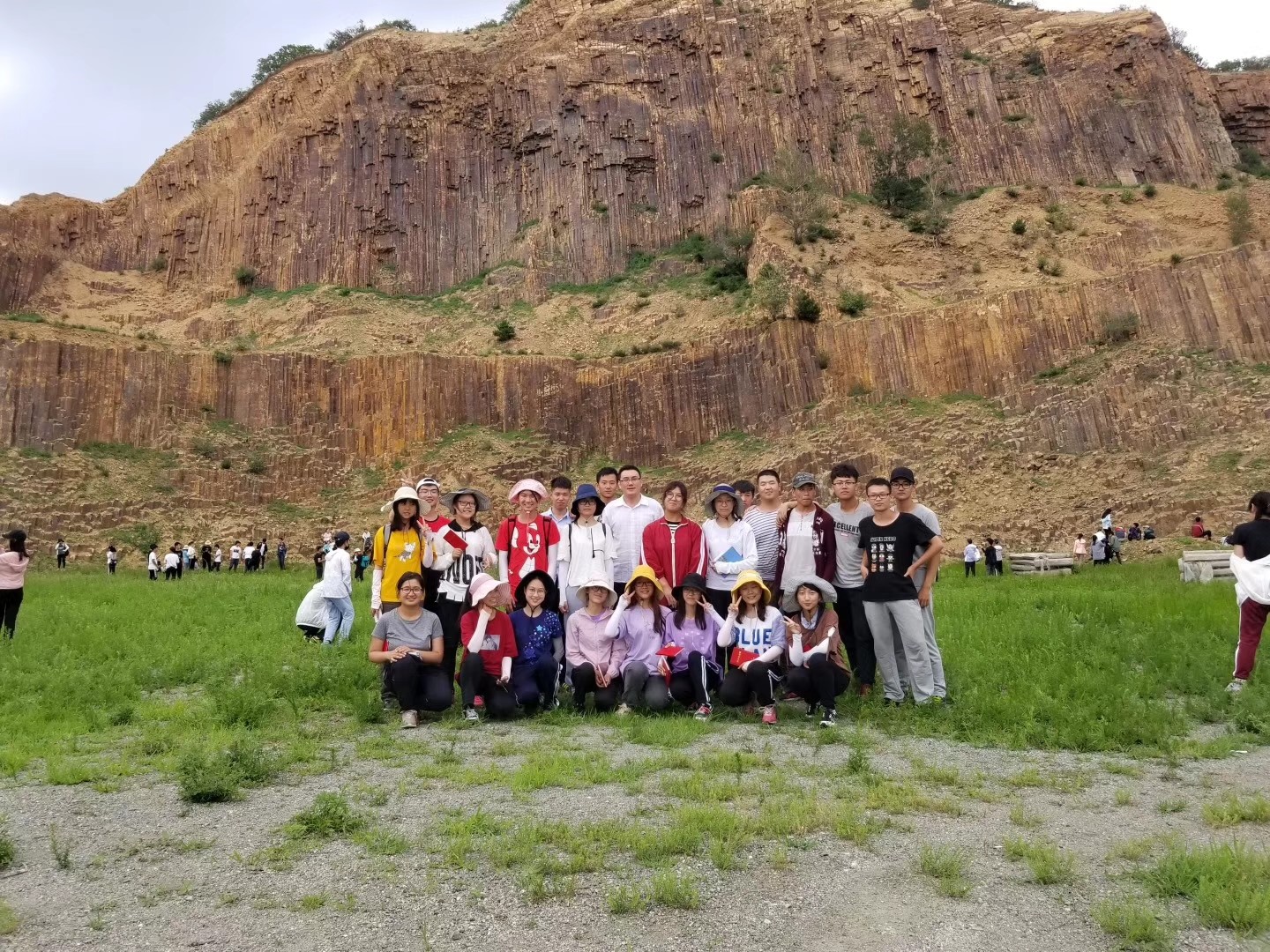 第三个观测点在山门火山大厦。在这里,我们了解了流纹岩的柱状节理。这里人工出露的柱状节理十分美观,同学们流连忘返,争相拍照留念。在愉快的氛围中结束了一天。