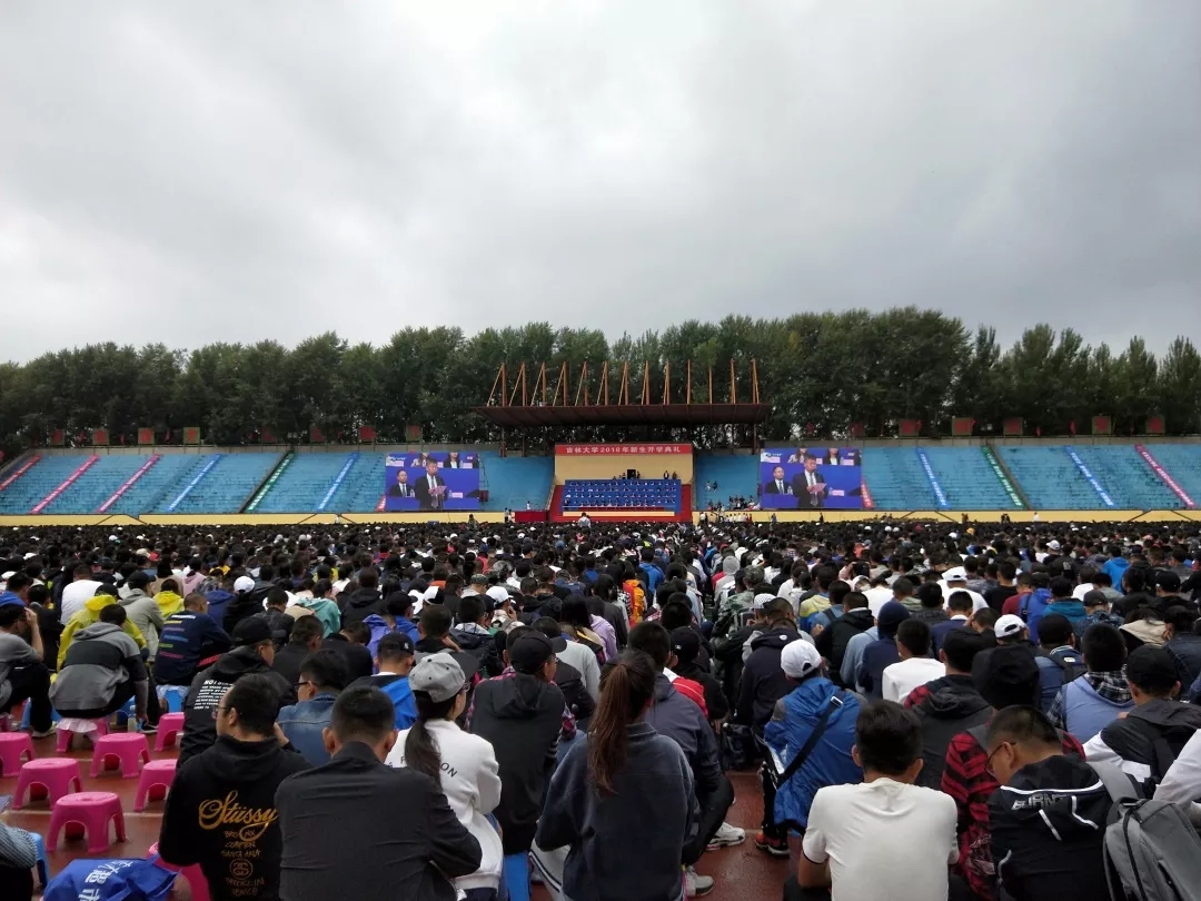 于中心校区体育场上隆重举行了2018年新生开学典礼。此次开学典礼到场的领导及来宾有党委副书记杨振斌教授,中国工程院院士、校长李元元教授,中国科学院院士于吉红教授,哲学社会科学资深教授张福贵教授,中文字幕