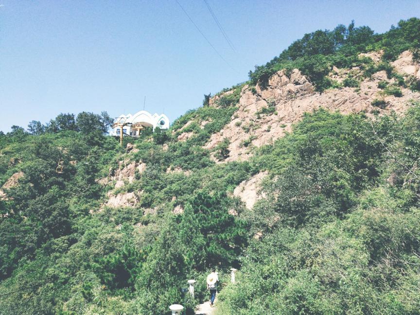 两个半小时的车程没有让大家的热情消退半分。上午十点,我们来到了风光秀丽的角山长城,雄奇的险峰屹立,古老的长城连绵不断,坐落群山之中,烽火台的残垣断壁向我们诉说着王朝更迭,历史兴衰。大家都被壮美的风景深深吸引,沿着盘山的栈道,在老师的带领下向着群山之中走去。