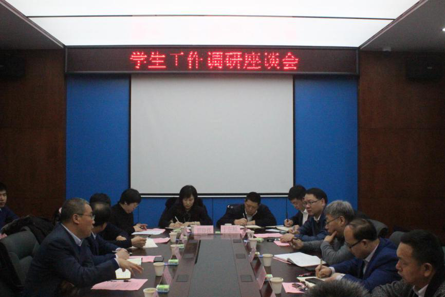 党委书记杨洲,院长任云生,党委副书记刘晓鹏以及学生工作办公室、研究生办公室的工作人员和学生代表参与了此次调研。
