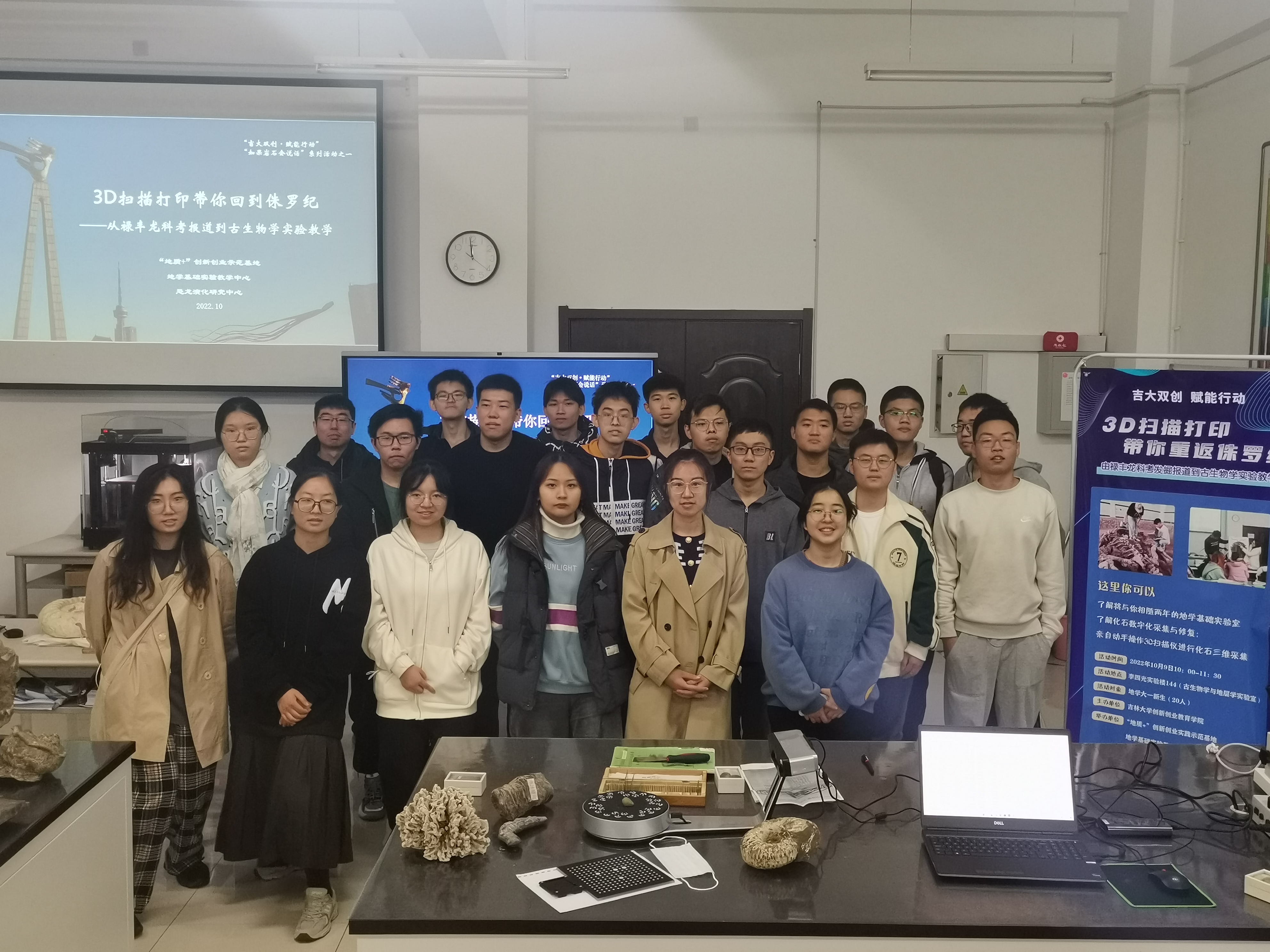 本次活动响应“吉大双创·赋能行动”创新创业的思想,通过禄丰龙科考挖掘科研实践活动的室内再现,促进大一新生对地学专业、行业的了解,培养其专业兴趣、创新实践精神;亲手操作3D扫描仪完成古生物化石数字化信息采集,让同学们感受到先进科学技术与古老专业的碰撞,为同学们埋下研究创新创业的种子,激发创新热情与创造力!