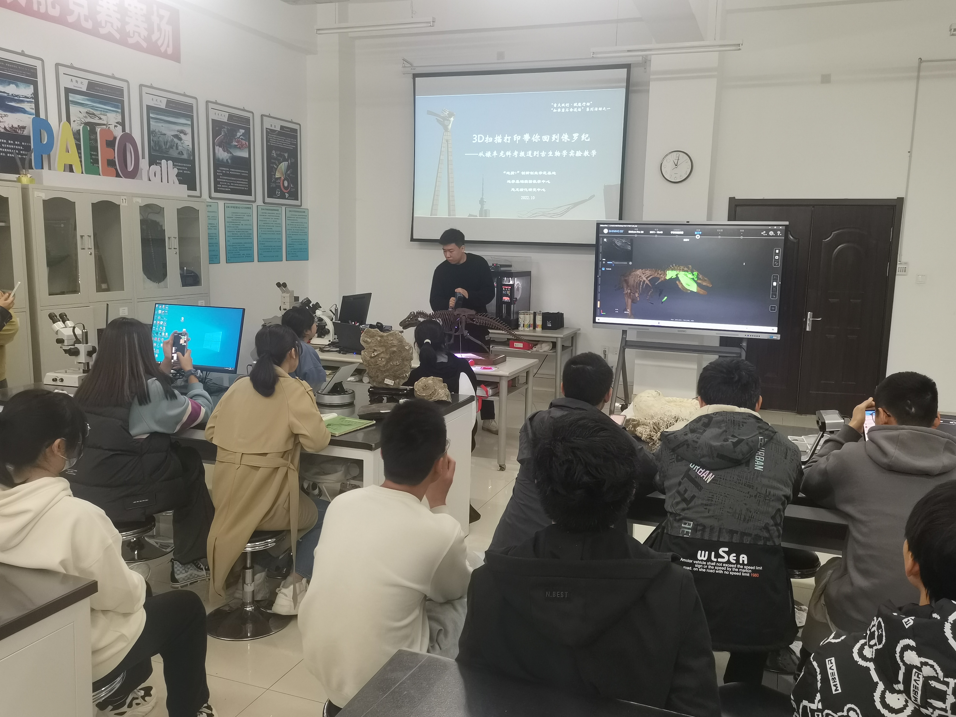 2022年10月9日,“地质+”创新创业实践示范基地在李四光实验楼144古生物与地层学实验室内,组织开展了“3D扫描打印带你重返侏罗纪”实践活动,活动由中文字幕