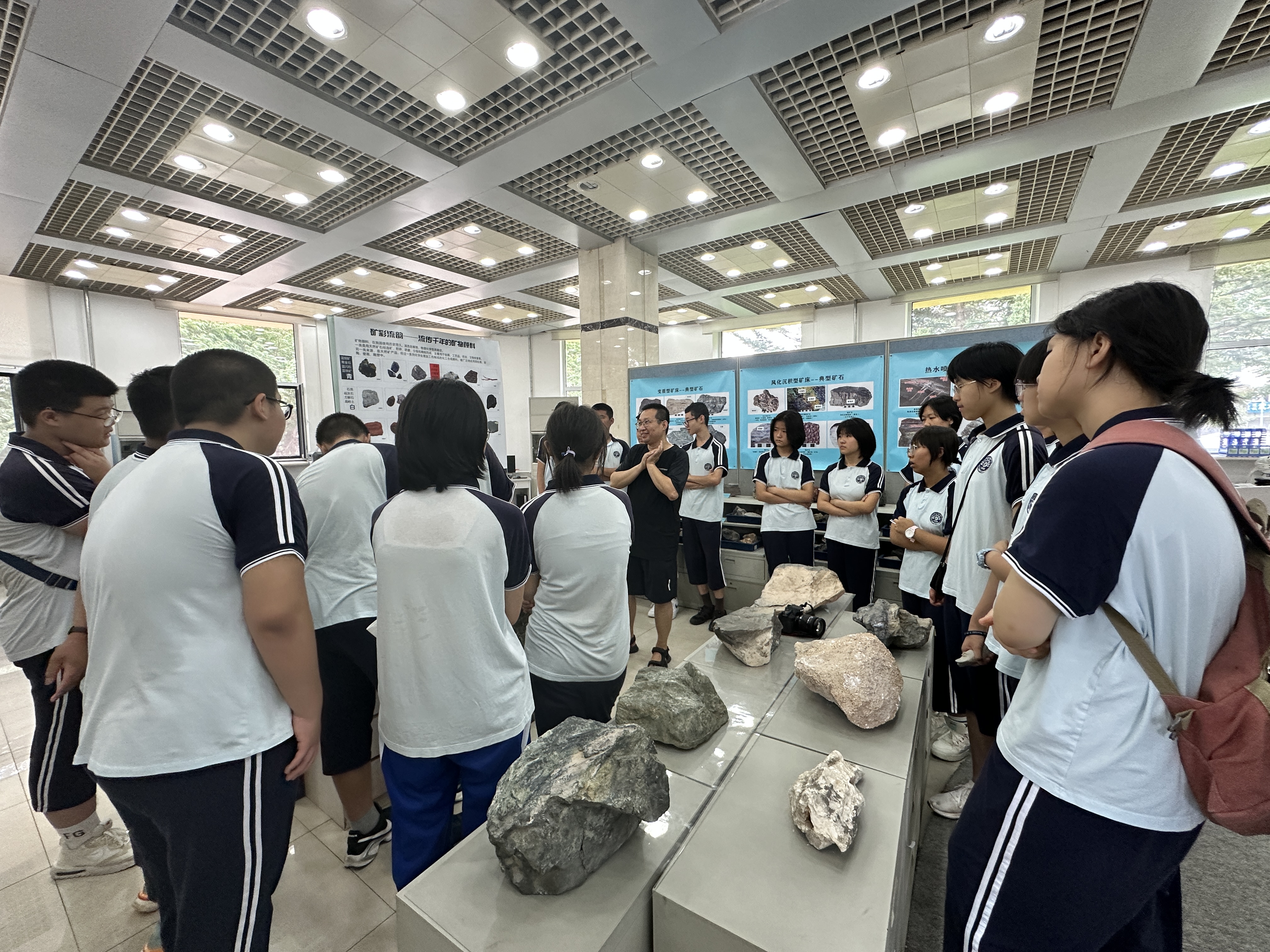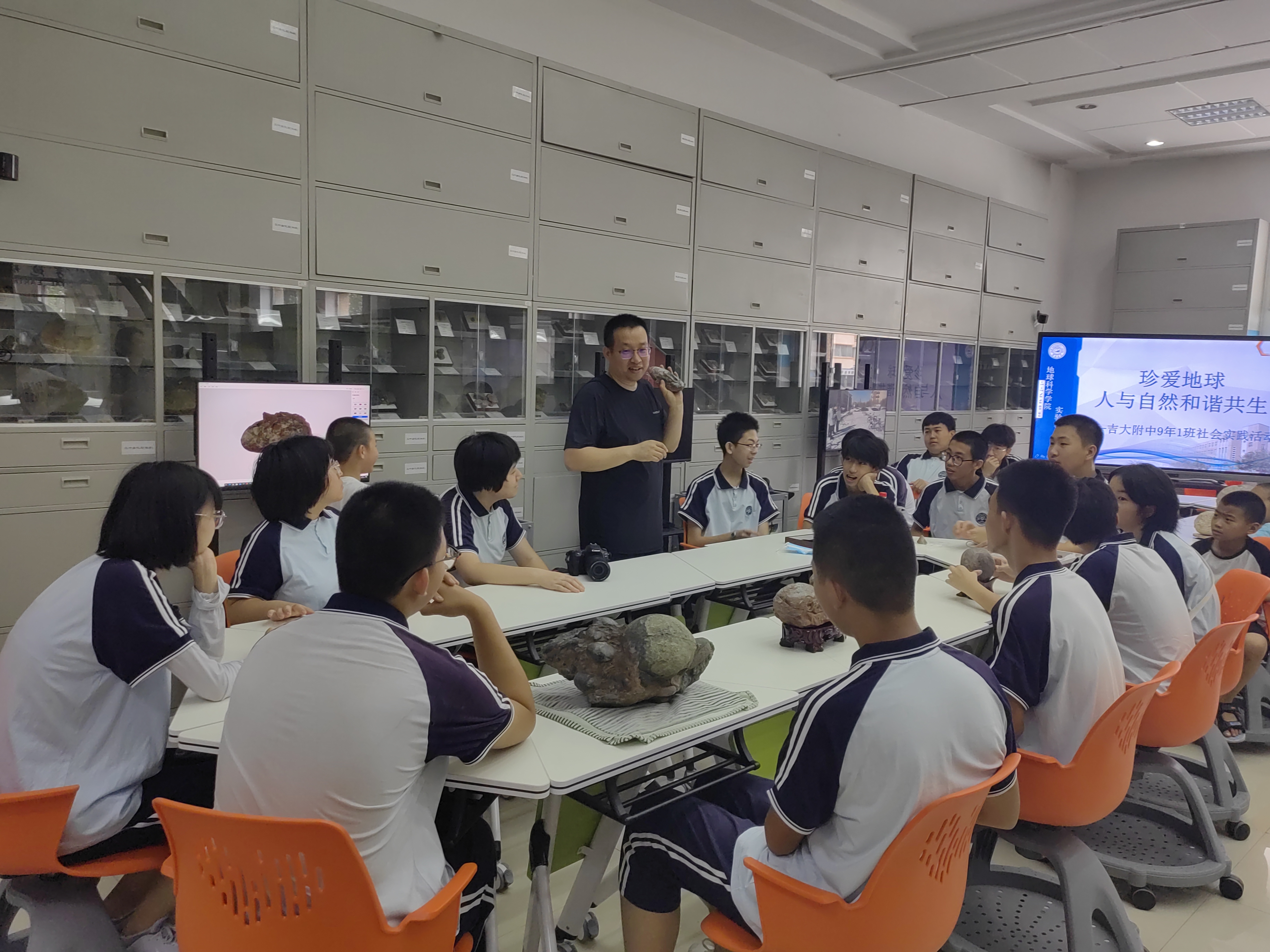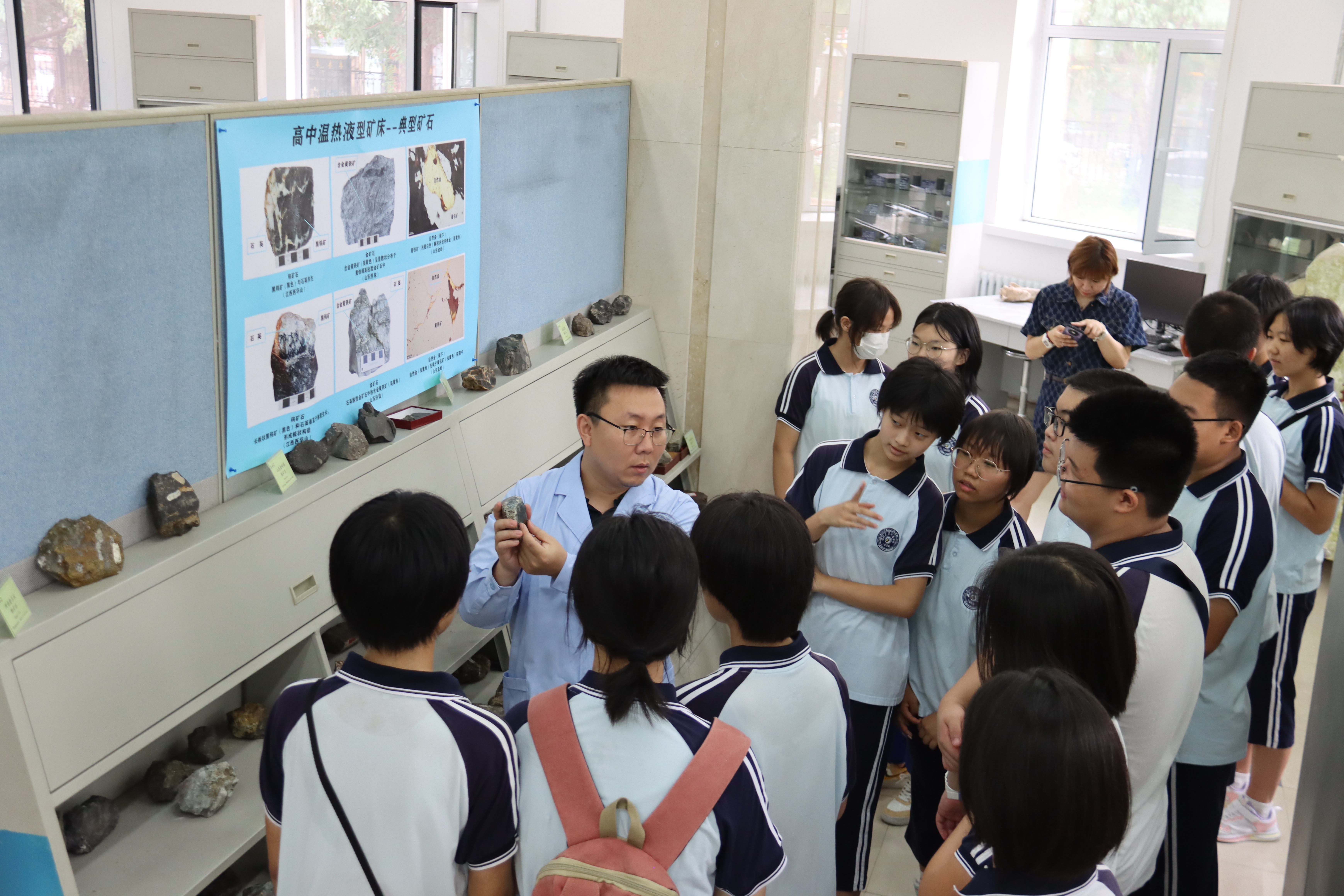 实验教学中心参加了“珍爱地球,人与自然和谐共生”主题科普实践活动。同学们通过参观讲解、零距离接触地质标本、有奖问答等丰富的互动活动,认识地球诞生演化过程,了解了古生物化石、各类岩石、矿物晶体等相关知识,开阔视野,更好地理解人与自然的和谐共生。