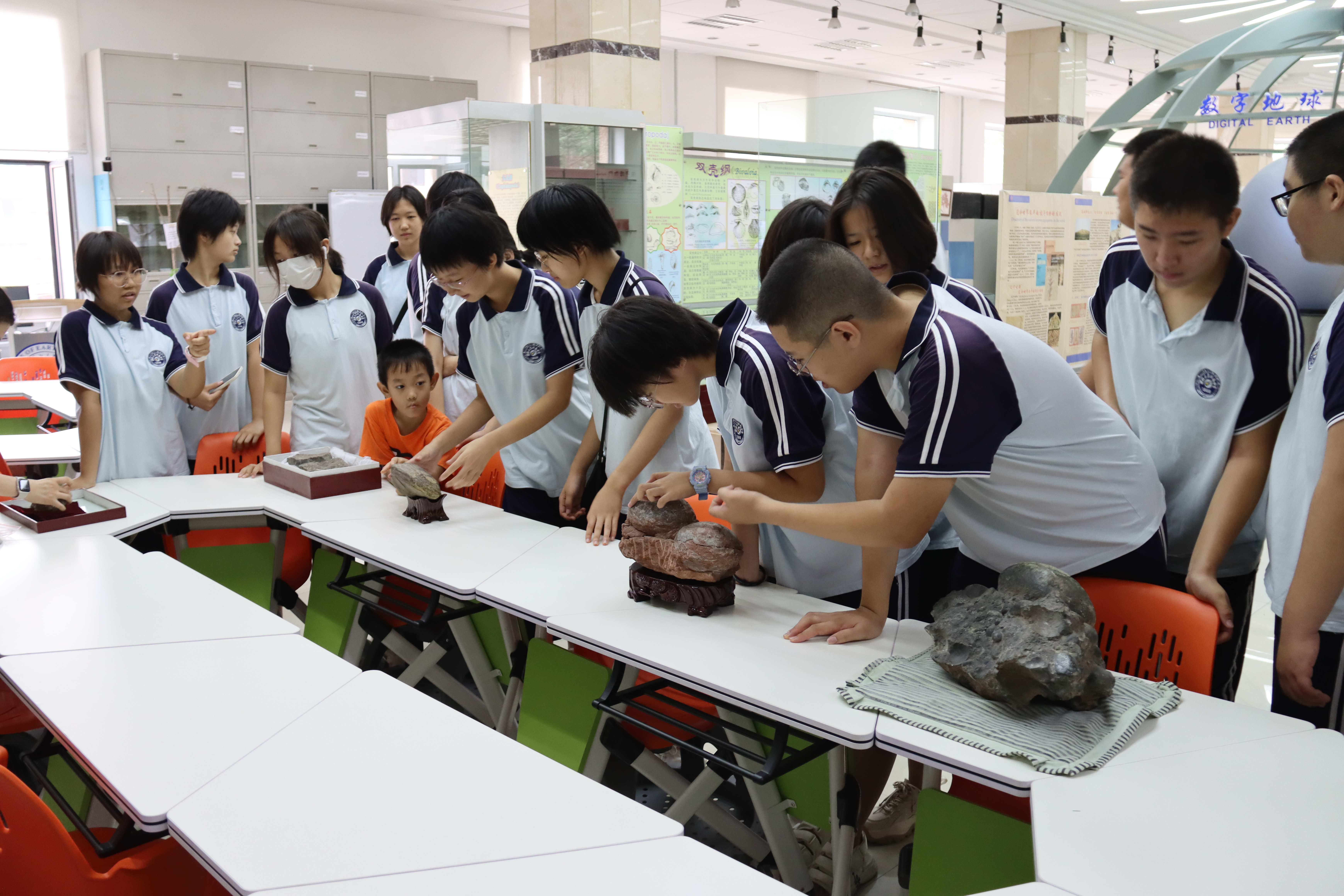 活动过程中,老师们耐心讲解,同学们积极提问,踊跃参与,热情高涨,同学们认识到地球是人类赖以生存的唯一家园,人类生活在地球上,衣食住行、生老病死、吃喝玩乐、社会发展都离不开矿物和岩石,由于矿物岩石资源的不可再生性,未来人类如何对它们进行更合理、更科学地开发利用,是他们需要面对的重要挑战。生物多样性及其演化使同学们意识到人与自然是生命共同体,只有处理好人与自然的关系,维护生态系统平衡,才能守护人类健康。最后,同学们热切期待以后篆刻、矿物颜料制作、化石清修及3D打印等开放活动的组织与开展。