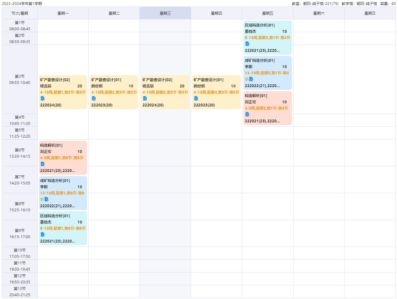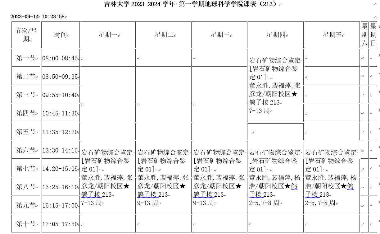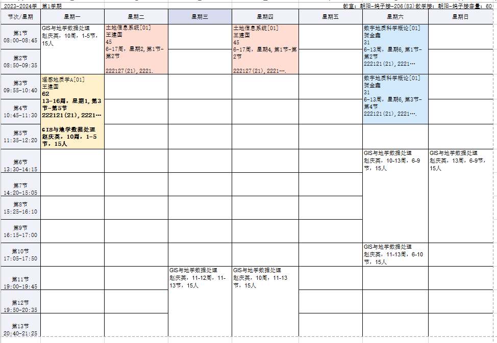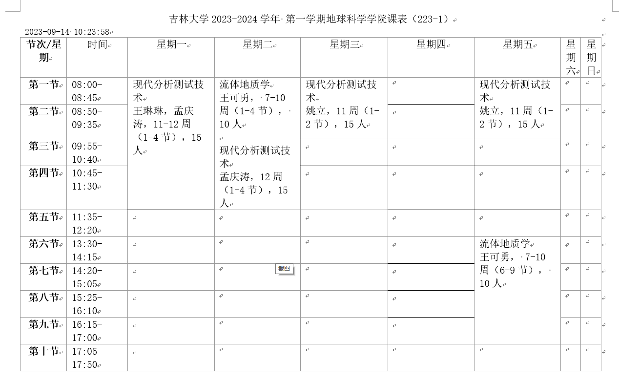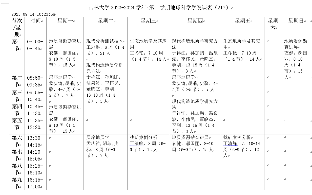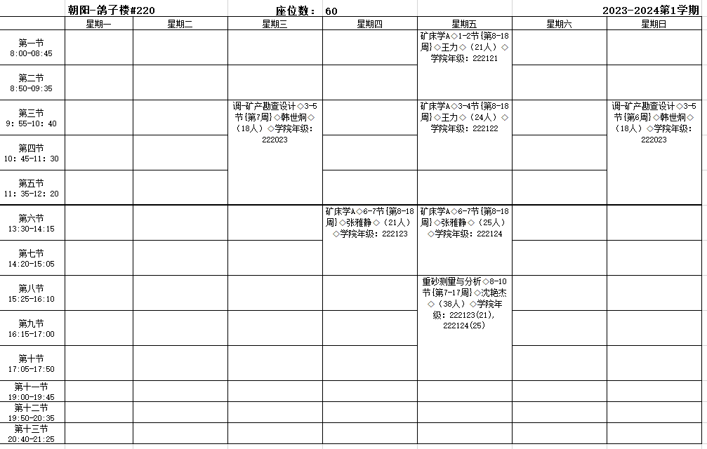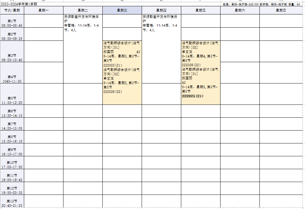 2023-2024学年第1学期课程表