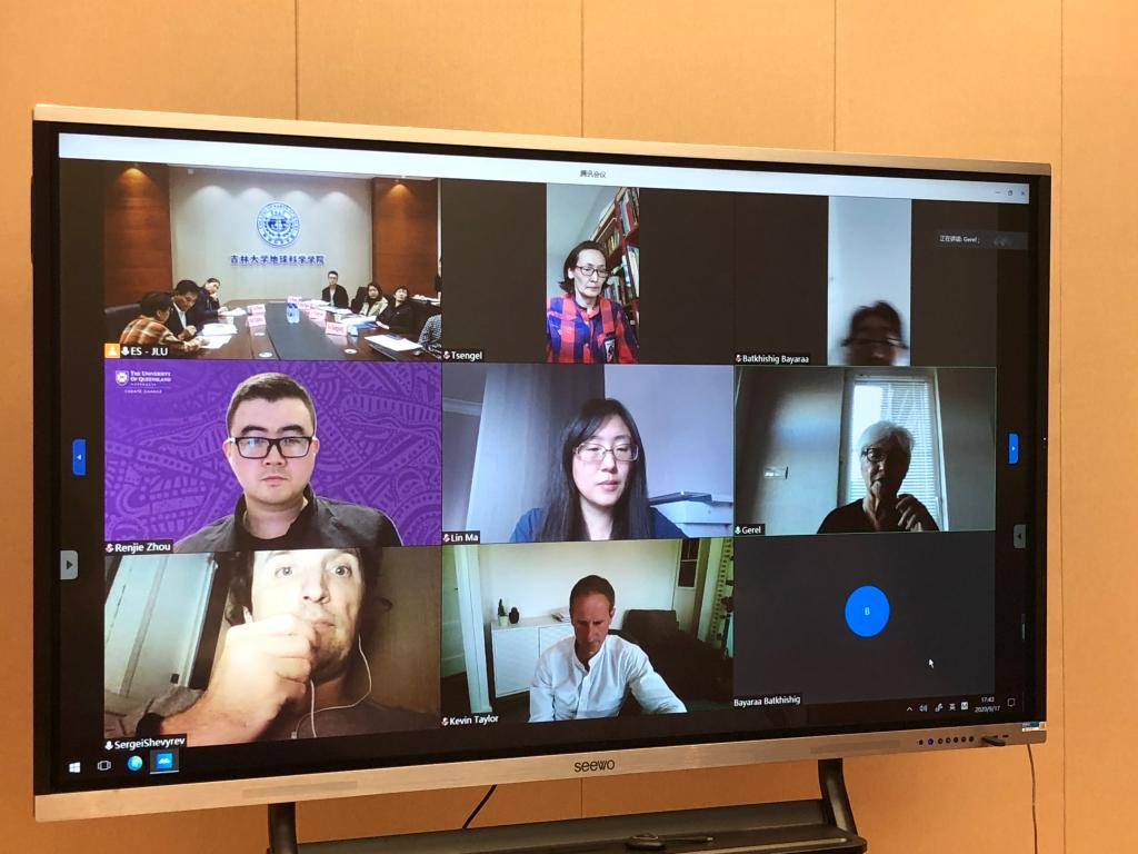 李文博讲师、蒙古科技大学地学研究中心奥其尔﹒盖瑞尔教授、曼彻斯特大学凯文﹒泰勒教授和马琳研究员分别以“东亚地区新生代沉积物重力均衡效应及其应用”,“东北黑土区城郊耕地多元质量退化评价及其保护分区研究”,“蒙古古俯冲带的岩浆作用和地球动力学”,和“地下储层的多尺度三维和四维成像-经验教训和未来方向”为主题进行报告与交流。双方就研究问题、研究方法、以及未来发展方向等前沿问题进行了探讨。